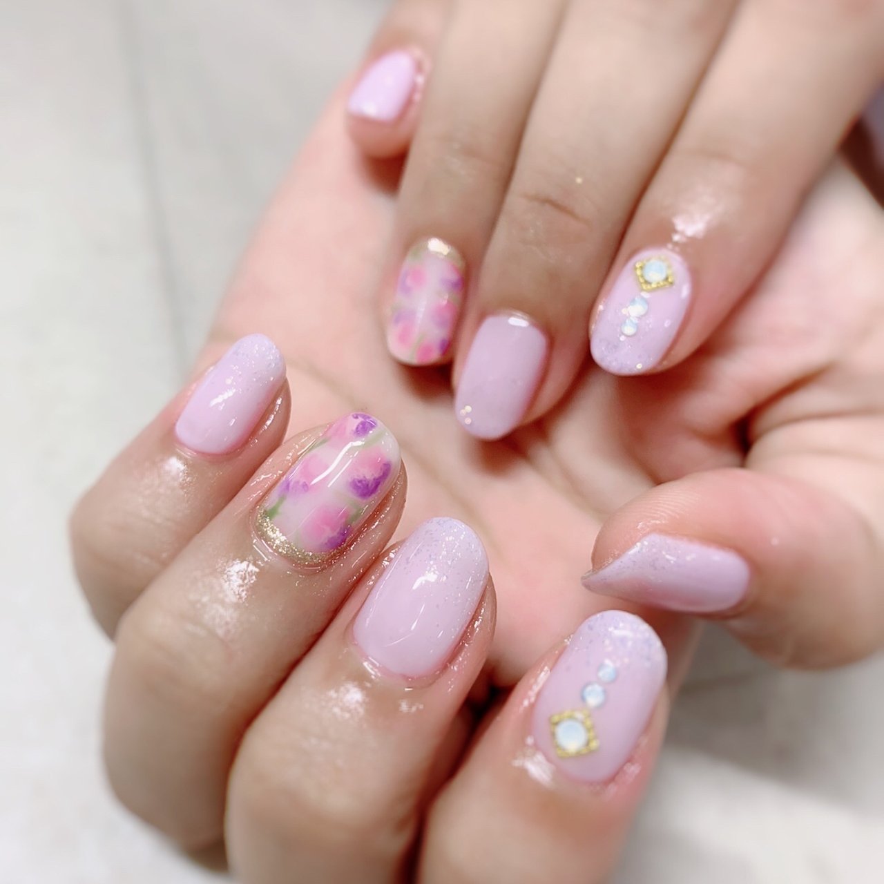 オールシーズン ハンド フラワー ピンク パープル 竹の塚 Fabulousのネイルデザイン No ネイルブック