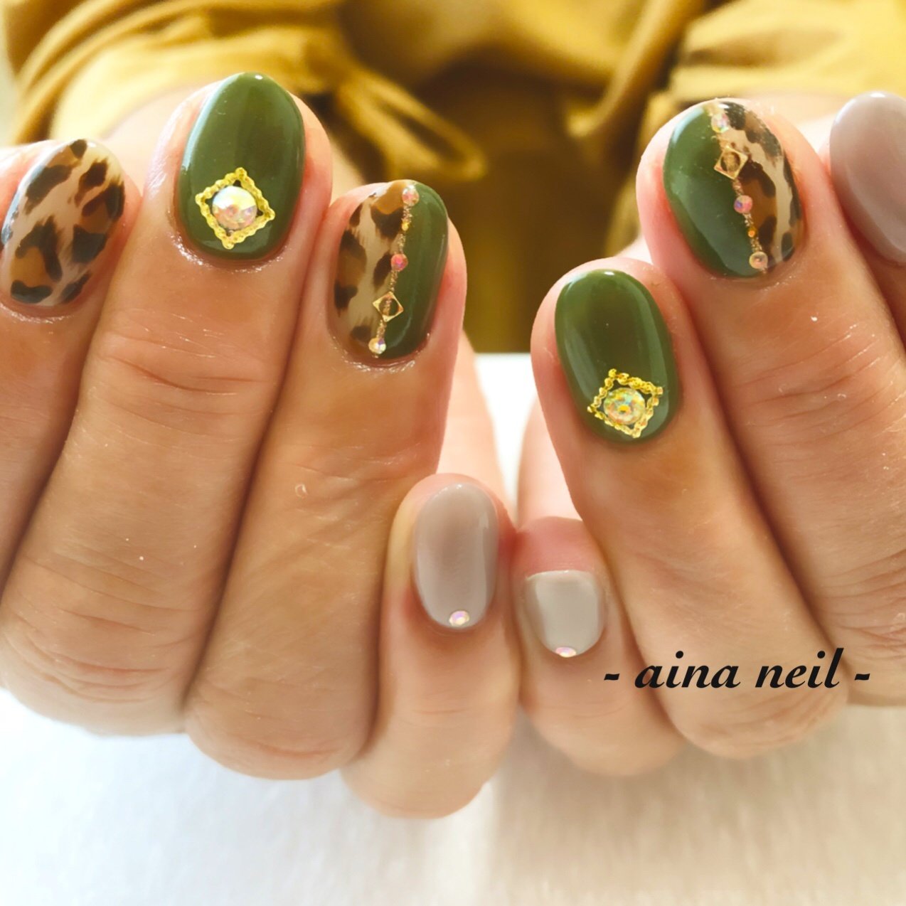 秋ネイル レオパード ヒョウ柄ネイル ネイル ラメネイル 手書きネイル 大人可愛いネイル ジェルネ Atelier Le Passage所属 H Nakatsukaのネイルデザイン ミニモ