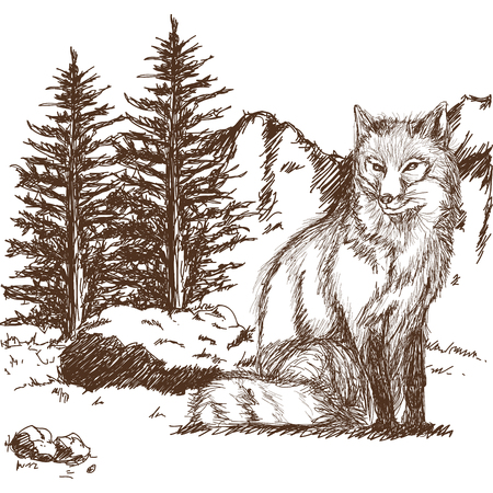オオカミ野生動物動物画像は手描きです オオカミの風景ベクトル イラストの鉛筆画 のイラスト素材 ベクタ Image